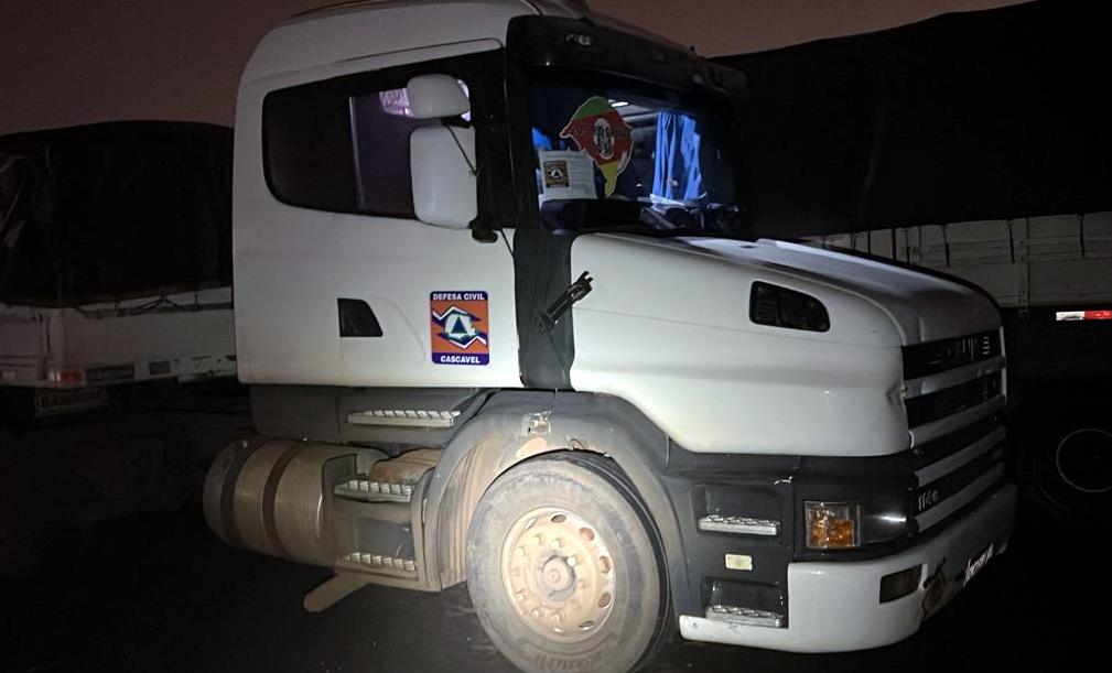A carreta, com placas de Cascavel (PR), transportava aproximadamente 20 toneladas de donativos, arrecadados de forma correta pela Defesa Civil, no Paraná. O veículo trafegava com credencial de ajuda humanitária expedida pela Defesa Civil do município, e um adesivo com os dizeres “SOS Rio Grande do Sul”.
