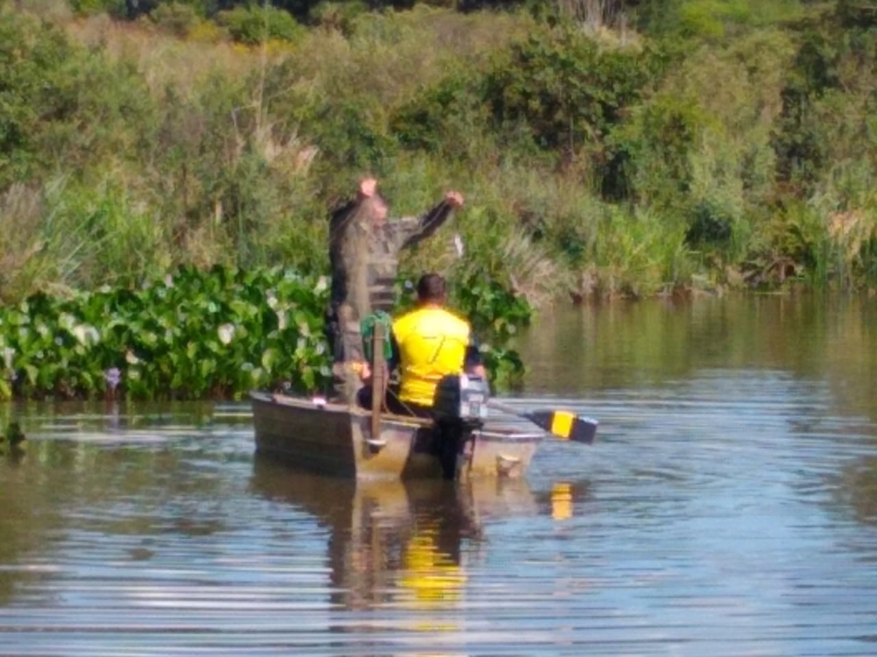 No local foram encontrados oito homens, onde, além da pesca, praticaram caça predatória de aves da fauna silvestre da espécie Pomba. Durante busca pessoal, veicular e no interior da edificação destinada como acampamento, foram encontradas cinco armas de fogo de uso permitido.