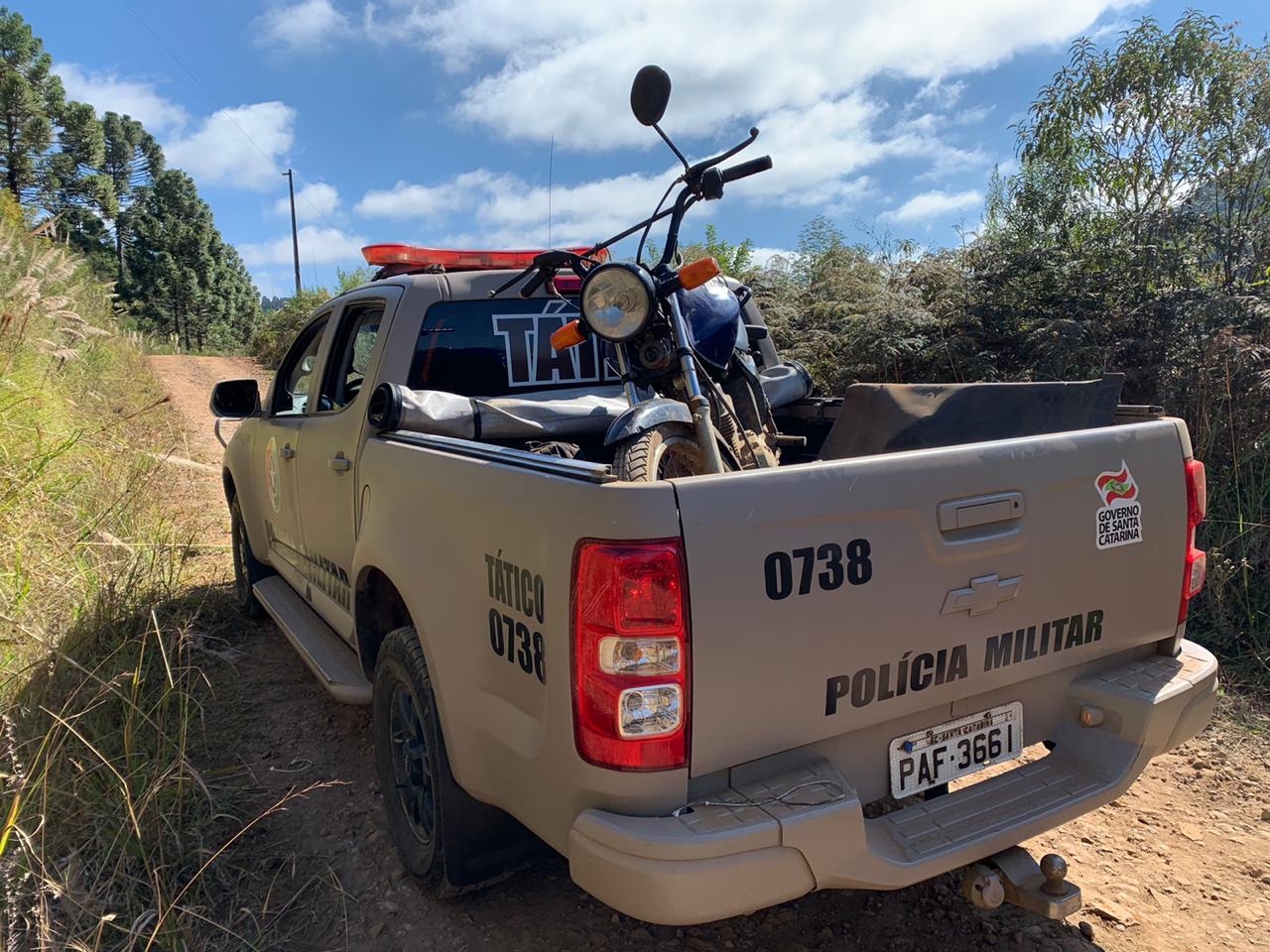O homem alegou possuir registro da arma, porém não tem porte. Foi realizado consulta ao sistema e constatado que a motocicleta é produto de furto e trata-se de uma Honda CG 125 Fan KS, emplacada em Videira.