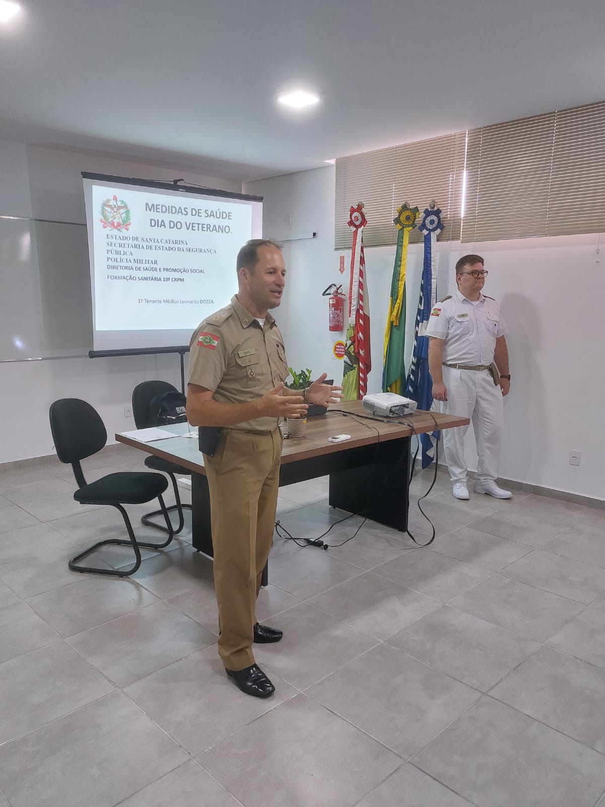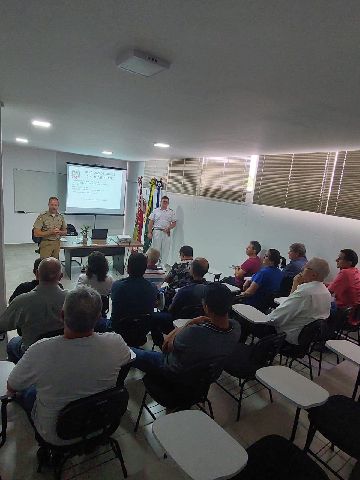 Na ocasião os Veteranos foram recepcionados pelo Comandante Major Cleverson Garcez e prestigiaram uma palestra sobre saúde, ministrada pelo 1º Tenente Médico Leonardo Dozza. Após, participaram de um coquetel preparado com todo o carinho para recebê-los.
