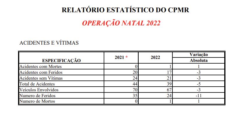 A Polícia Militar Rodoviária (PMRv) informou na tarde desta segunda-feira, 26, os números finais da Operação Natal 2022. Infelizmente, uma morte foi registrada no período. Em 2021 não foi registrada nenhuma morte nas rodovias estaduais de Santa Catarina durante a mesma operação.