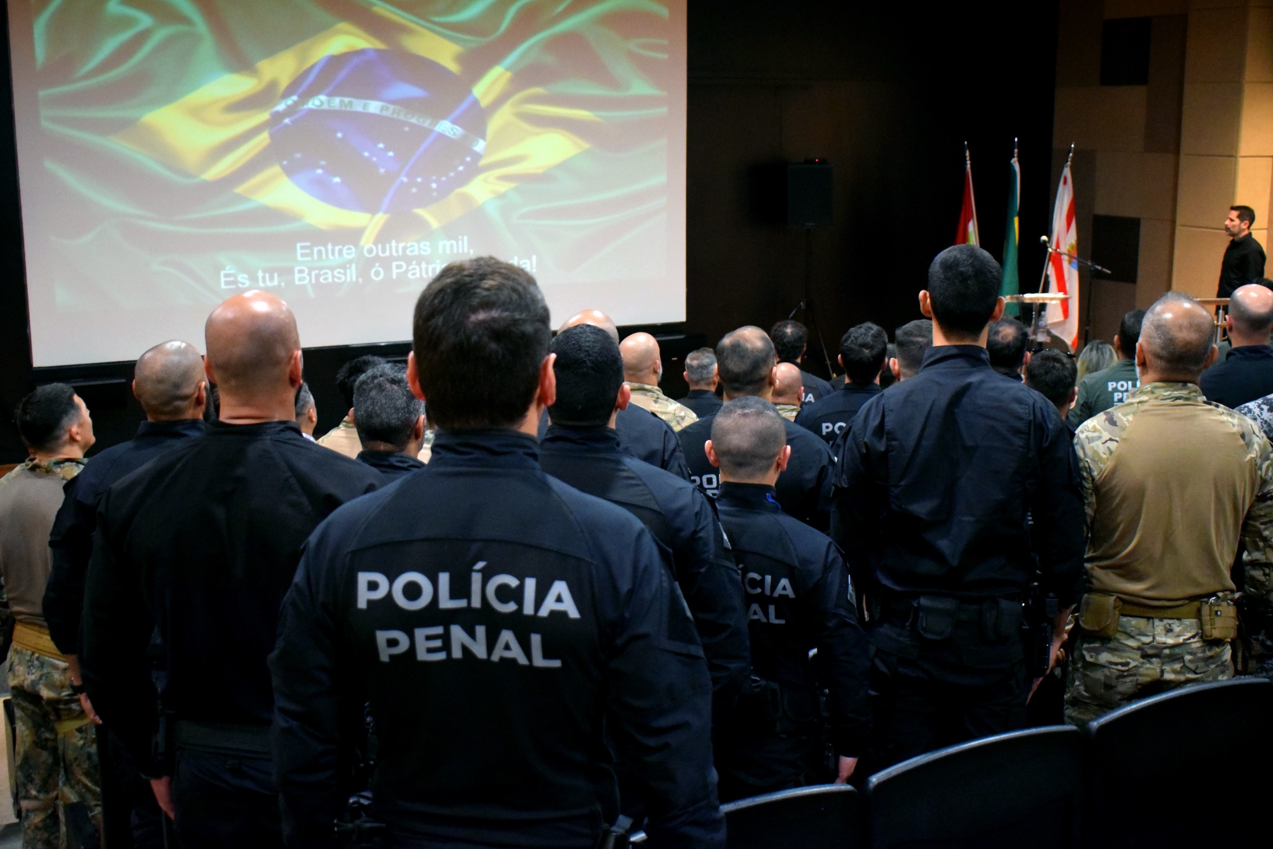 A abertura do evento contou com a presença da secretária de Justiça e Reintegração Social, Danielle Amorim Silva; do secretário de Justiça do Espírito Santo, Rafael Rodrigo Pacheco; do diretor-geral do Departamento da Polícia Penal, Maicon Alves; do diretor de Segurança e Operações, Thiago Ayslan; do diretor da ACAPS, Klaus da Silva; do superintendente da Grande Florianópolis, Kelvin Diehl; e do presidente da Agepen (Associação dos Policiais Penais do Brasil), Ferdinando Gregório.