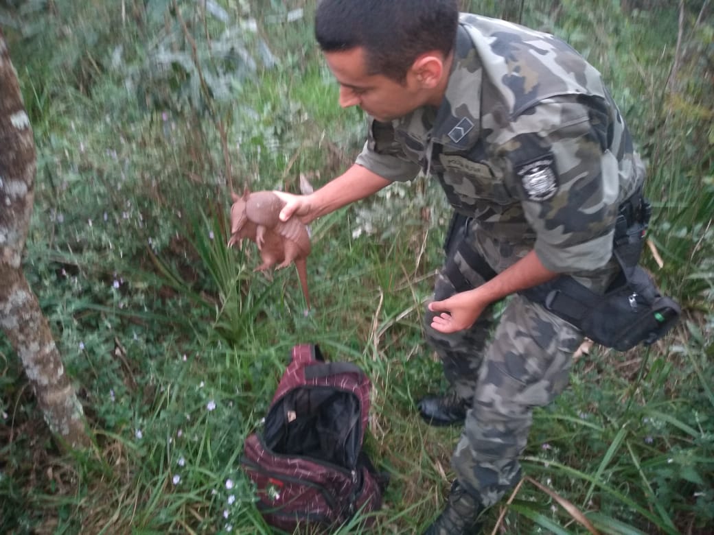 Conforme a PMA, dentro de uma mochila que estava junto com os homens havia um animal silvestre Tatu-mulita, vivo e que recentemente havia sido capturado. Com os suspeitos que estavam com o animal foram encontrados ainda uma faca e um facão. O animal foi devolvido à natureza, pois, é proibido comércio de espécimes da fauna silvestre e de produtos e objetos que impliquem em sua caça, perseguição, destruição ou apanha.