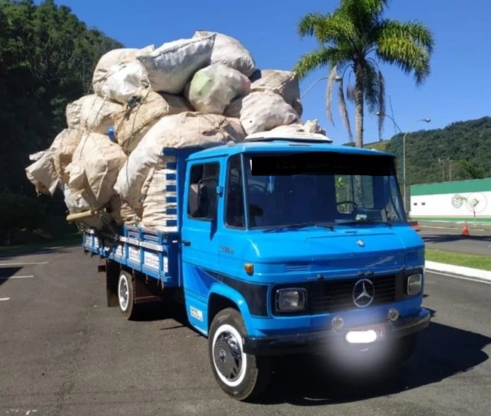 De acordo com a PMRv, a carga de material reciclável excedia as dimensões aceitas pela regulamentação e o veículo não possuía os equipamentos necessários para amarração da carga.