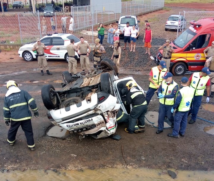 Conforme a PRF, a viatura, um Renault/Duster aquaplanou na rodovia e capotou. Dois policiais ocupavam o veículo no momento do acidente. Um deles sofreu lesões graves e foi submetido à massagem cardiorrespiratória por mais de 40 minutos para ser reanimado. A outra vítima do acidente sofreu lesões leves.