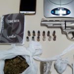 Na sequência da prisão, foi dado cumprimento a um mandado de busca na residência de do suspeito, sendo encontrado no local um revólver calibre 38, 12 munições do mesmo calibre, 128 gramas de maconha, uma balança de precisão, cheques e um caderno com anotações relacionadas ao tráfico.