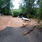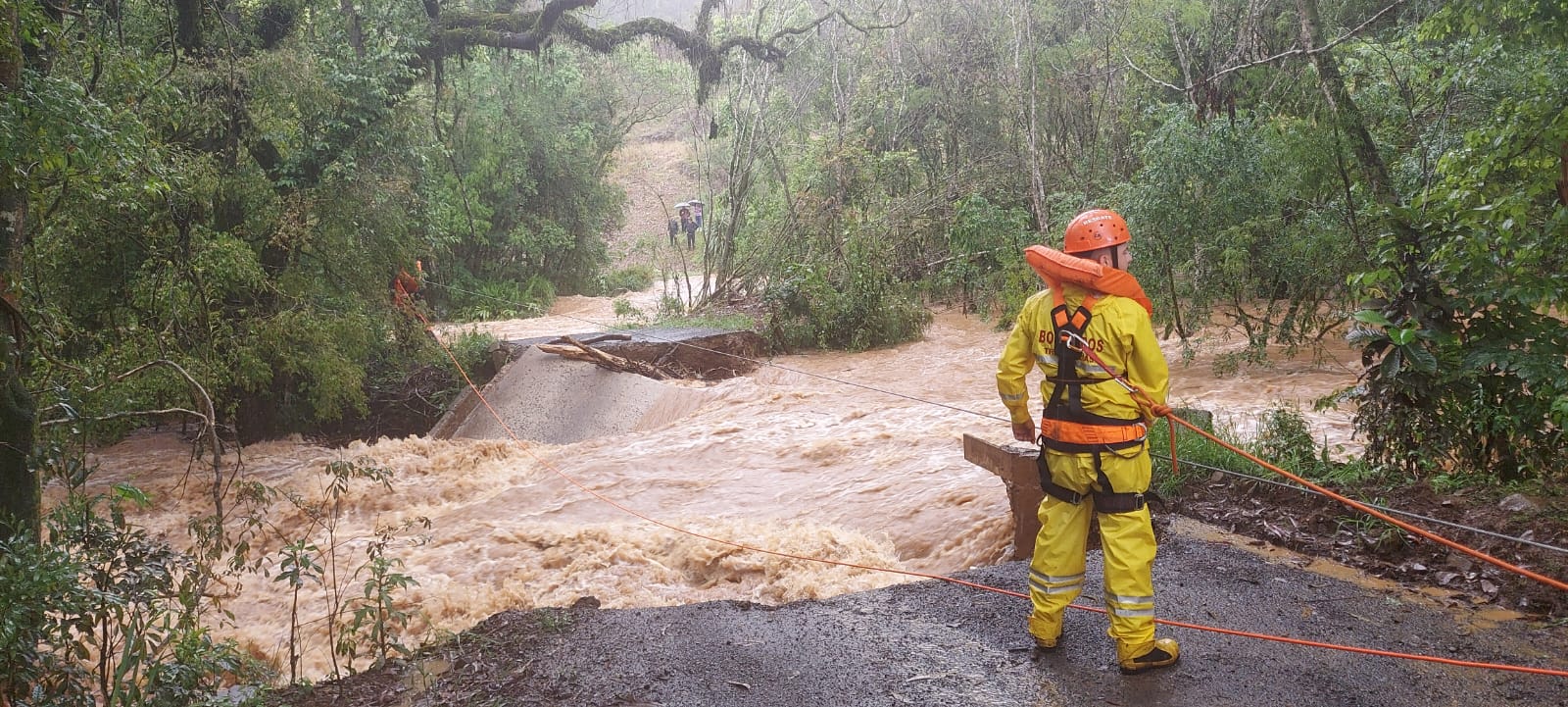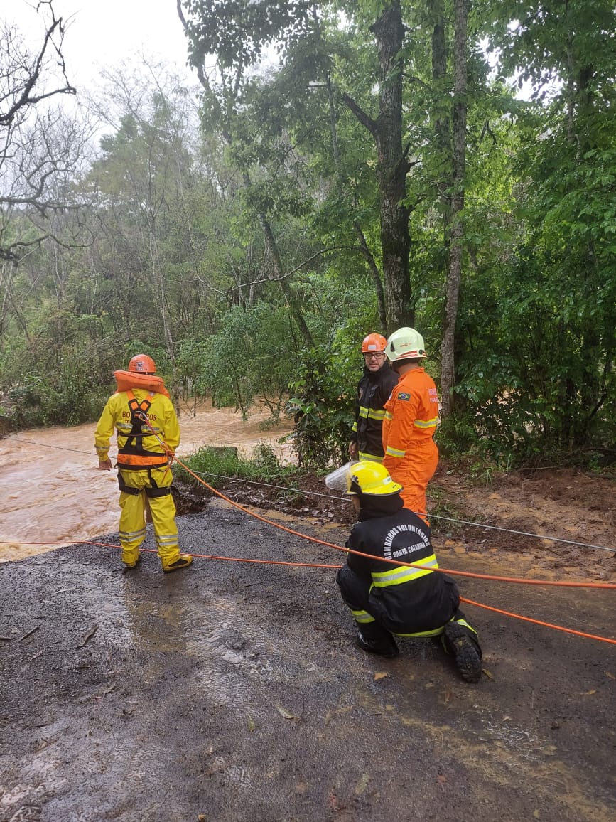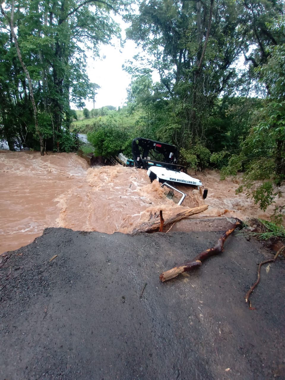 Treze Tílias – Na manhã desta terça-feira (11) a ponte da estrada geral de Linha Rio dos Cedros, interior de Ibicaré, acabou caindo na hora em que um caminhão iniciava sua travessia.