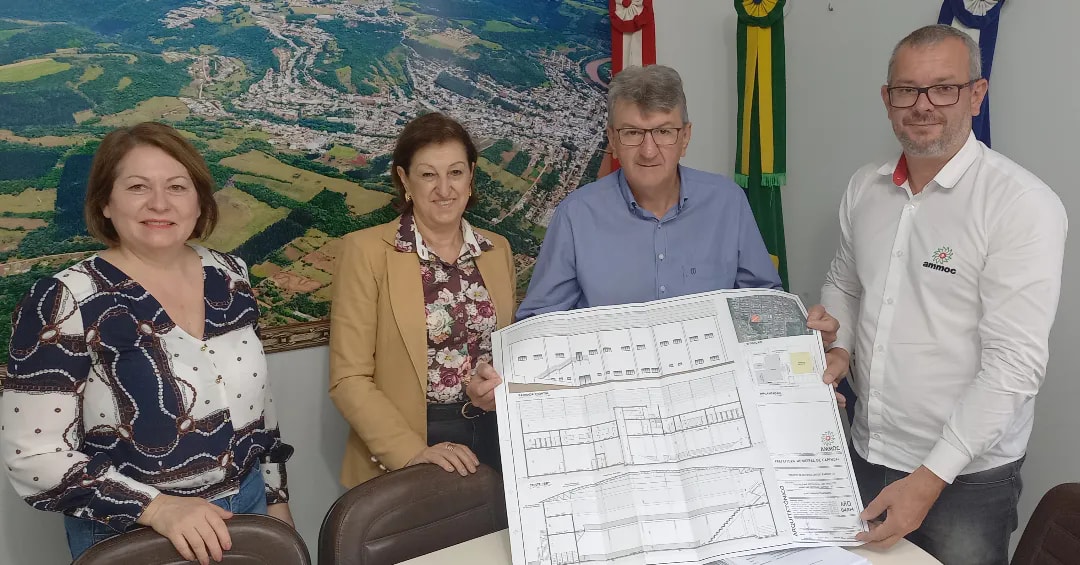 Foi realizada nesta quinta-feira (24) a entrega do projeto para a segunda etapa da obra que se refere ao Ginásio de Esportes no Loteamento Parizotto, com área de 2.342,32m². A entrega foi feita pelo engenheiro da AMMOC, Denir Zulian, e contou com a presença da Vice-prefeita Noemia Pizzamiglio, Secretária de Educação Veranice Lovatel, além do Prefeito Nilvo Dorini. A obra está orçada em mais de R$ 3 milhões, sendo que R$ 2,5 milhões com recursos da Secretaria de Educação do Estado, viabilizados através do deputado Romildo Titon. A próxima etapa será o processo licitatório para que o mais breve possível seja entregue essa obra que é um anseio da comunidade.