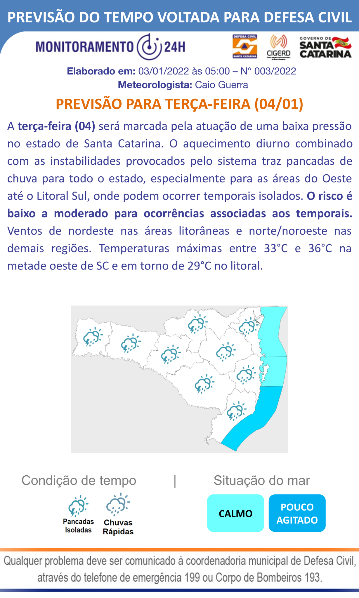 Previsão do tempo para esta terça-feira em Santa Catarina