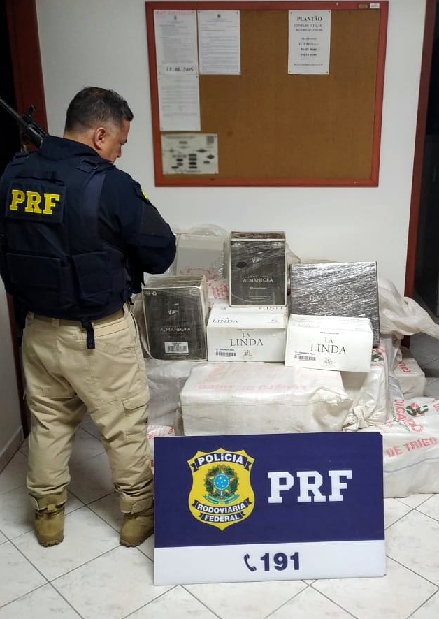 Os policiais abordaram o caminhão VW placas de Frederico Westphalen/RS durante fiscalização no km 61 da rodovia. Ao abrir o baú, encontraram cerca de 60 caixas do produto, de marcas variadas. Sem nenhuma comprovação de pagamentos de taxas aduaneiras.