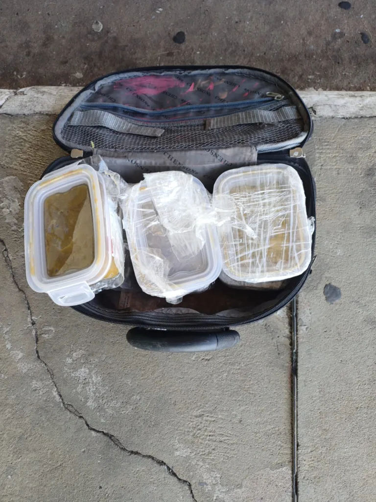 Durante a verificação das bagagens, os policiais encontraram uma pequena mochila contendo seis embalagens plásticas com a droga. O haxixe marroquino é uma substância derivada da maconha, porém possui maior concentração de THC e alto valor comercial.
