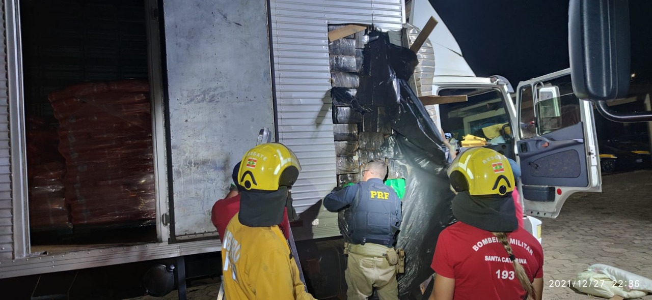 Chapecó – Na noite de ontem (27), policiais rodoviários federais apreenderam 2,1 toneladas de maconha escondidas no fundo falso de um caminhão na BR 480 em Chapecó.