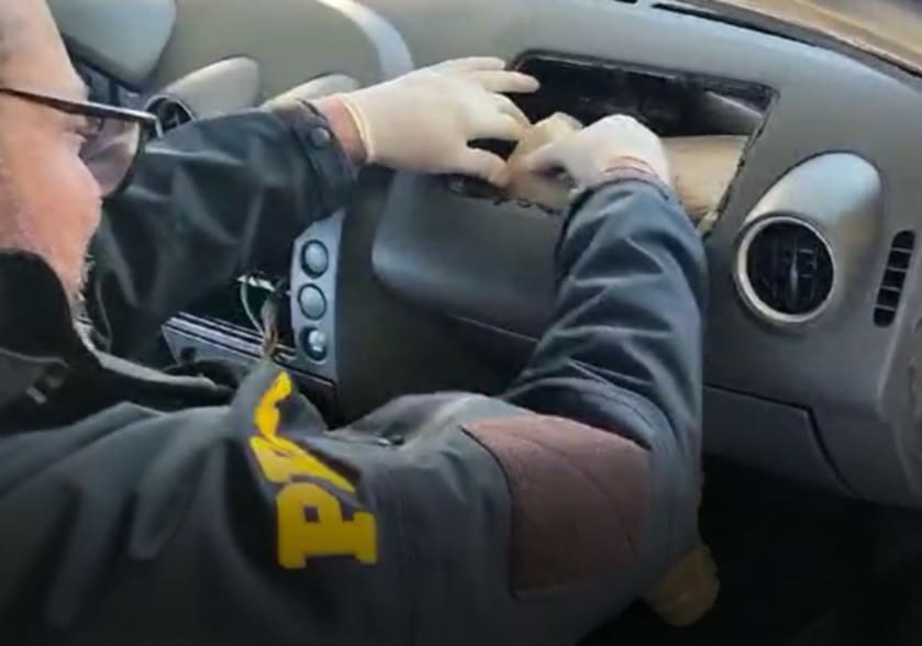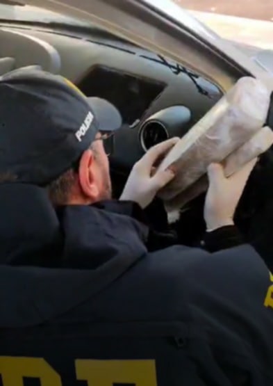 Durante a vistoria ao carro com placas de Florianópolis, os PRFs perceberam dentro do duto de passagem do ar condicionado um objeto de cor e forma incompatível com a peça. Ao abiri o painel, encontraram diversos tabletes com a droga. A desmontagem veicular continuou e mais tabletes foram localizados no interior dos bancos traseiros, dentro dos para-choques e em fundos falsos no assoalho.