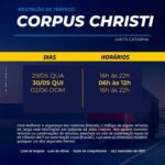 A Polícia Rodoviária Federal em SC inicia à zero hora de amanhã, quarta-feira (29) a Operação Corpus Christi 2024, que se estende até as 23h59 de domingo, dia 02/06. Serão cinco dias com aumento relevante de fluxo de veículos nas rodovias, fator que pode contribuir para a ocorrência de acidentes.