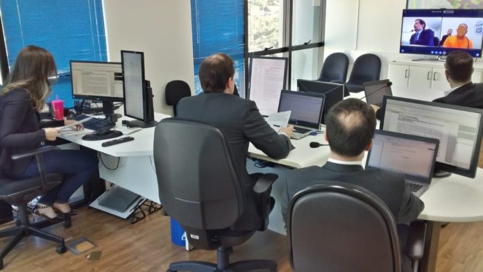 Chapecó – A primeira videoaudiência de Santa Catarina tratou de justificar o não comparecimento do preso ao fórum. Ele cumpria pena em regime aberto e deveria se apresentar mensalmente. Por causa do descumprimento, teve a pena regredida para o regime semiaberto. Em poucos minutos, o apenado explicou o motivo da falta – direto do Complexo Penitenciário – bem como o promotor público defendeu a regressão da pena, o defensor público argumentou em favor do presidiário e o juiz deu o veredicto – do gabinete, no fórum da comarca de Chapecó.