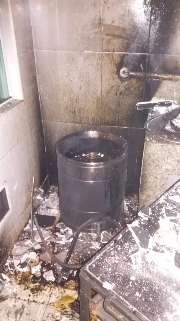 No local confirmou que se tratava de um incêndio em uma fritadeira elétrica, a guarnição iniciou o combate as chamas com uma linha de ataque com jatos neblinado e pulsos rápidos. No local foi gerenciados os risco, desligado a energia e o gás , para o realizar o combate as chamas. Foram utilizado aproximadamente 20 litros de água , realizado a ventilação e isolado local para perícia.