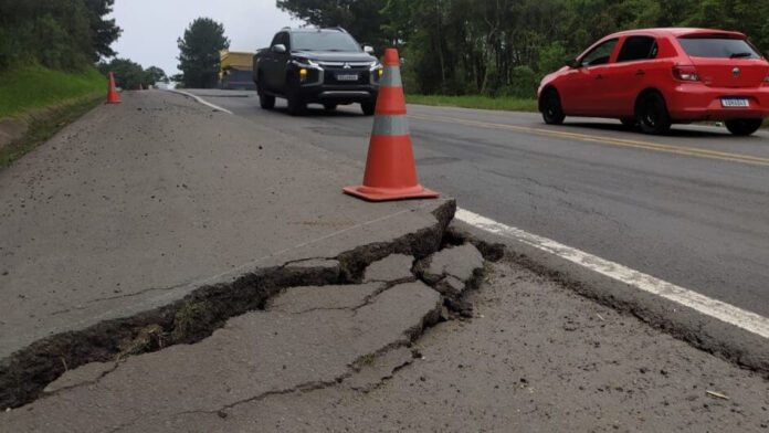 • BR-470, Km 239, em São Cristóvão do Sul: interditada e sem previsão de liberação após o asfalto ter cedido;