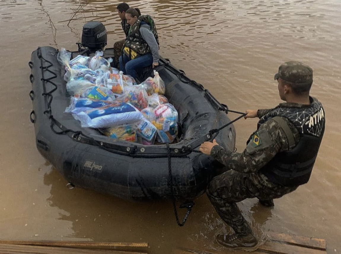 As Forças Armadas, sob a coordenação do Ministério da Defesa e em parceria com a sociedade civil, estão transformando a solidariedade dos brasileiros na maior campanha humanitária já registrada no Brasil. Até o momento, os militares em cooperação com voluntários civis, empresas privadas e agências governamentais transportaram ao Rio Grande do Sul 3,6 mil toneladas de donativos, o que corresponde a cerca de 60% do total arrecadado (6,2 mil toneladas) por meio da campanha “Brasil Unido pelo Rio Grande do Sul”, uma iniciativa do Governo Federal. A distribuição às vítimas das enchentes é feita sob a responsabilidade da Defesa Civil.