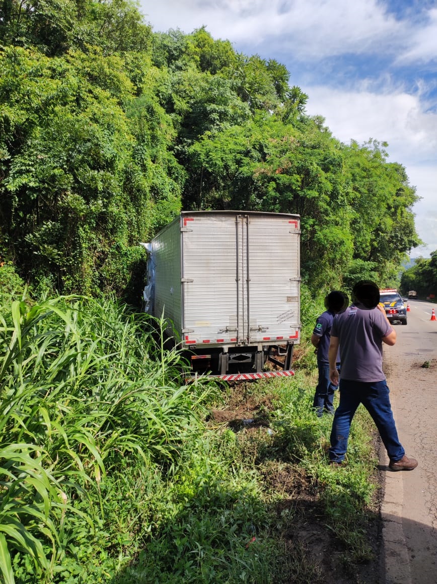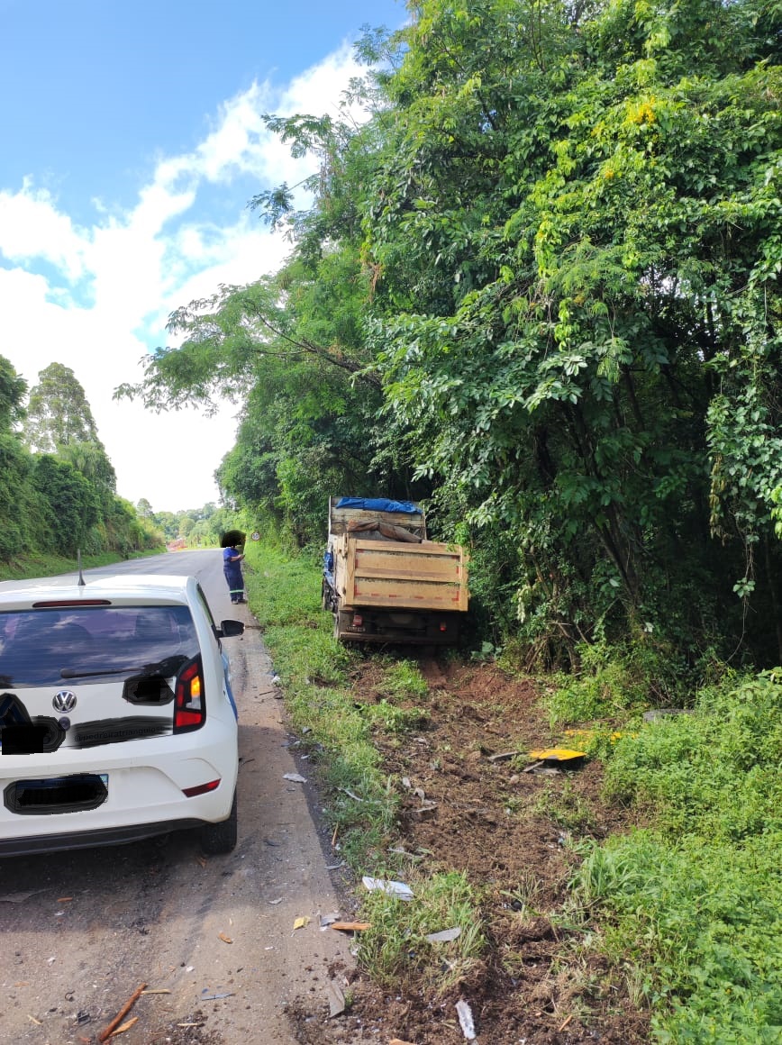 No local, a guarnição encontrou um masculino adulto, deambulando às margens da via, já sinalizada pela PRF. O mesmo relatou que perdeu o controle do caminhão que conduzia, vindo a sair da pista.