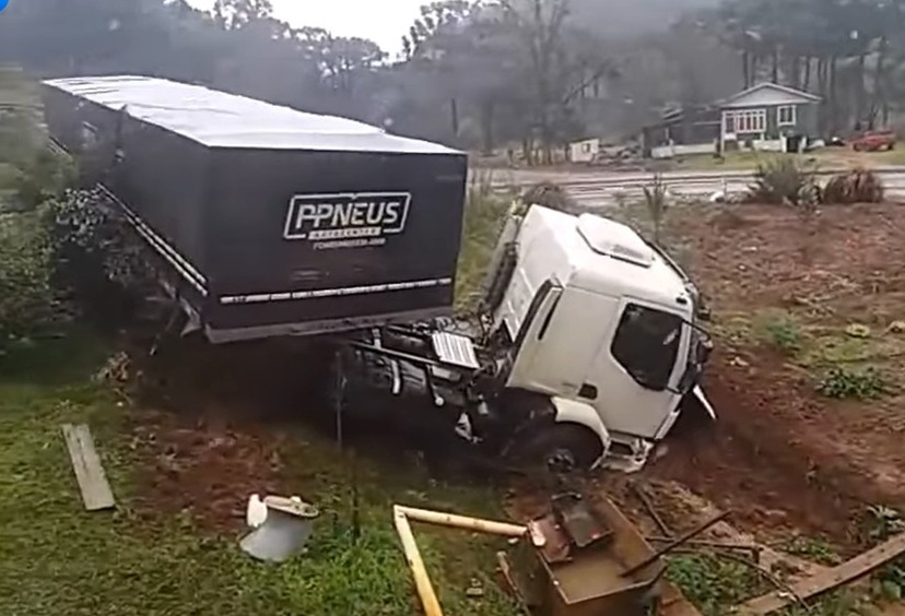 Uma saída de pista foi registrada na tarde desta sexta-feira (17) em uma curva na BR-282, em Ponte Serrada. No local, uma carreta acabou caindo nas margens da rodovia para evitar um novo acidente.