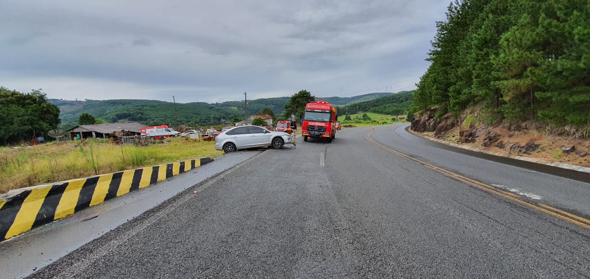 Vargem – O Corpo de Bombeiros de Campos Novos foi acionado por volta das 17h desta terça-feira (21) para atender ocorrência de acidente de trânsito na BR-282 no acesso ao município de Vargem. Saída de pista envolveu um automóvel Ford Focus com placas de Sananduva (RS) ocupado por cinco pessoas.