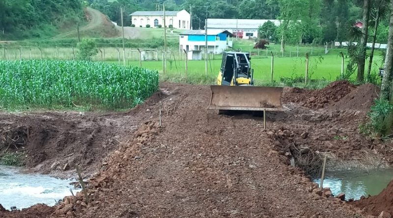A Secretaria de Transportes e Obras de Ouro finalizou a implantação de um desvio na estrada próximo ao campo da comunidade de Pinheiro Alto, na tarde desta quinta-feira (23). A passagem é provisória e substitui temporariamente a ponte levada pela enxurrada do último dia 16.