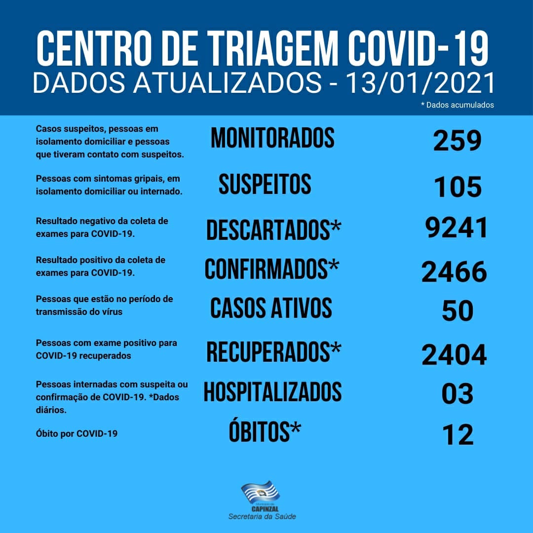 Secretaria de Saúde de Capinzal atualiza dados sobre a Covid-19 Últimas Notícias 13 de janeiro de 2021Redação Foto: Mauricio Vieira / Secom