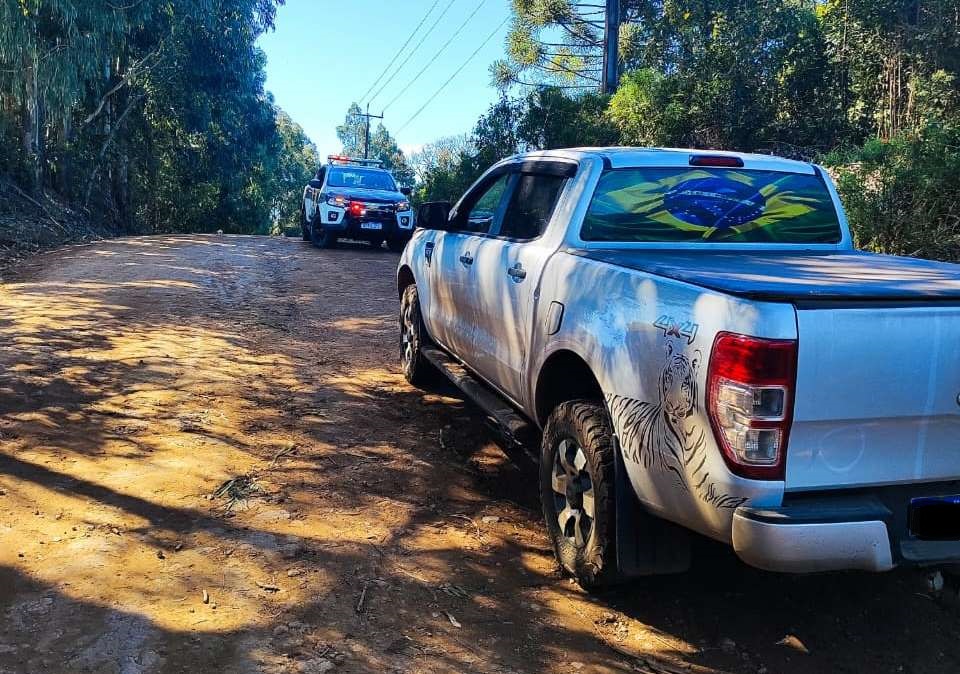 A recuperação da Ford Ranger foi confirmada ao Oeste Mais pela Polícia Militar, que contou com o apoio do Núcleo de Operações com Cães da Polícia Civil, após moradores relatarem a presença do veículo em uma estrada de terra na linha Indumel, no interior de Passos Maia.