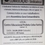 Capinzal – O Sindicato dos Trabalhadores nas Indústrias de Carnes e Derivados, Indústrias de Alimentação e Afins de Capinzal (Sindicadezal) convoca os associados para participar da assembleia geral extraordinária a ser realizada no próximo fim de semana.