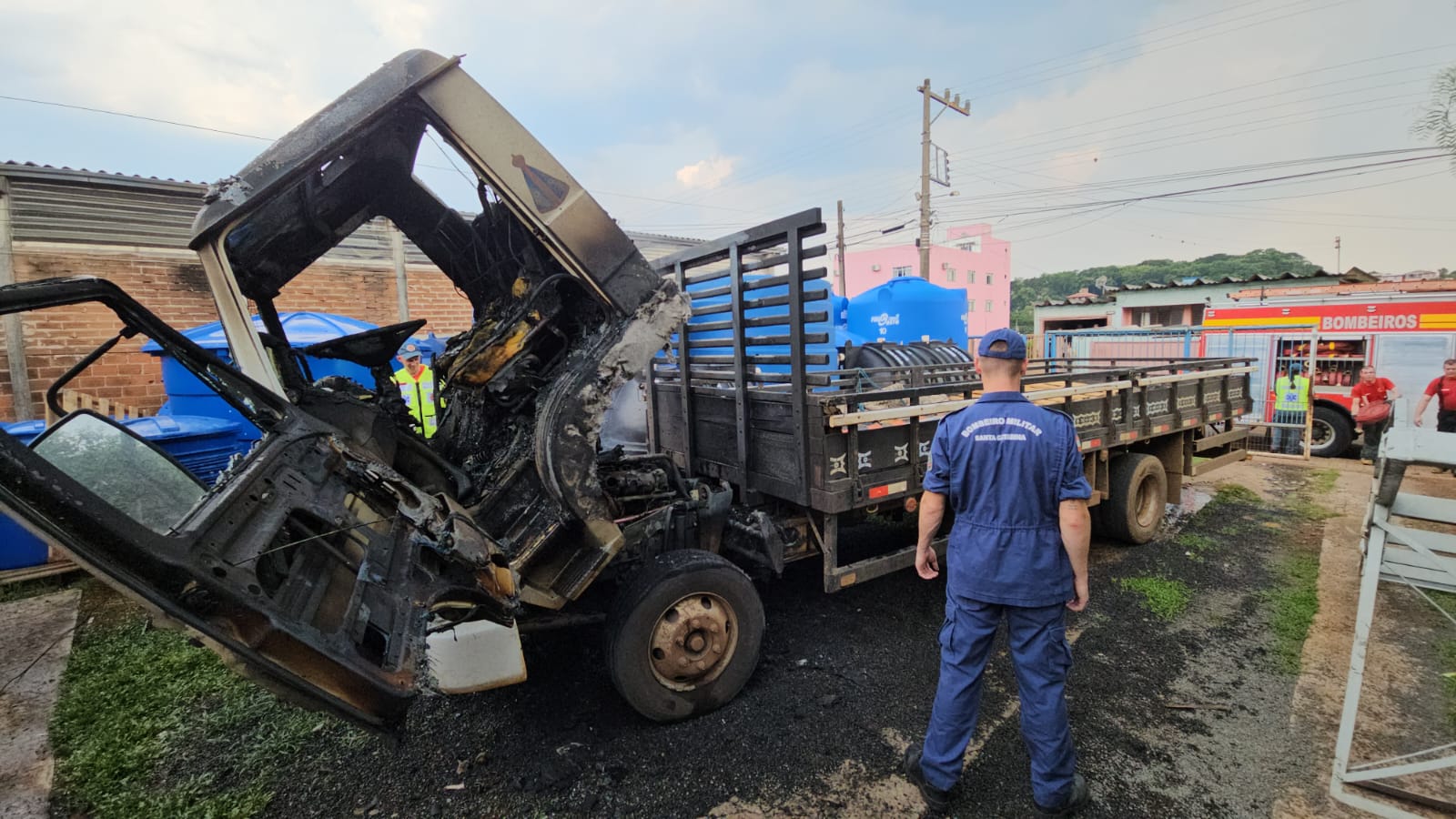Chapecó – Na tarde deste domingo (12), por volta das 14h10, o Corpo de Bombeiros de Chapecó recebeu informações de que um caminhão estaria em chamas na Rua Salvador, Bairro Quedas do Palmital, em Chapecó, no oeste catarinense.