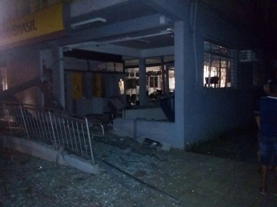 Bandidos explodem caixas eletrônicos de dois bancos e atiram contra PM em Salto Veloso