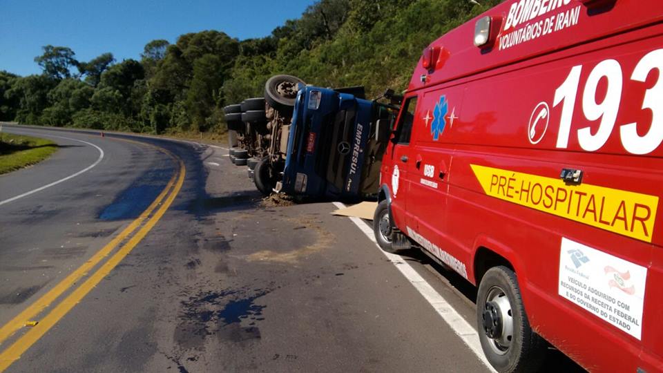 Carro tomba na SC-135 em Piratuba; veículo parou de lado às margens da estrada