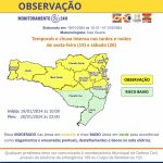 Nestes dias em que o sol predomina e os temporais de verão ganham força entre a tarde e a noite, fique sempre atento aos Avisos e Alertas emitidos pela SDC SC. Siga as recomendações de, em caso de temporais, buscar local abrigado e fechar janelas e portas. Em caso de chuva intensa, não se arrisque transitando em locais alagados.