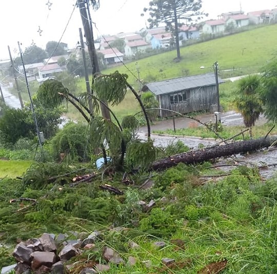Conforme informações dos Bombeiros Voluntários, cerca de 30 residências ficaram danificadas pela força do vento. Além disso, houve registro de postes caídos, árvores arrancadas e parte do interior sem energia elétrica.