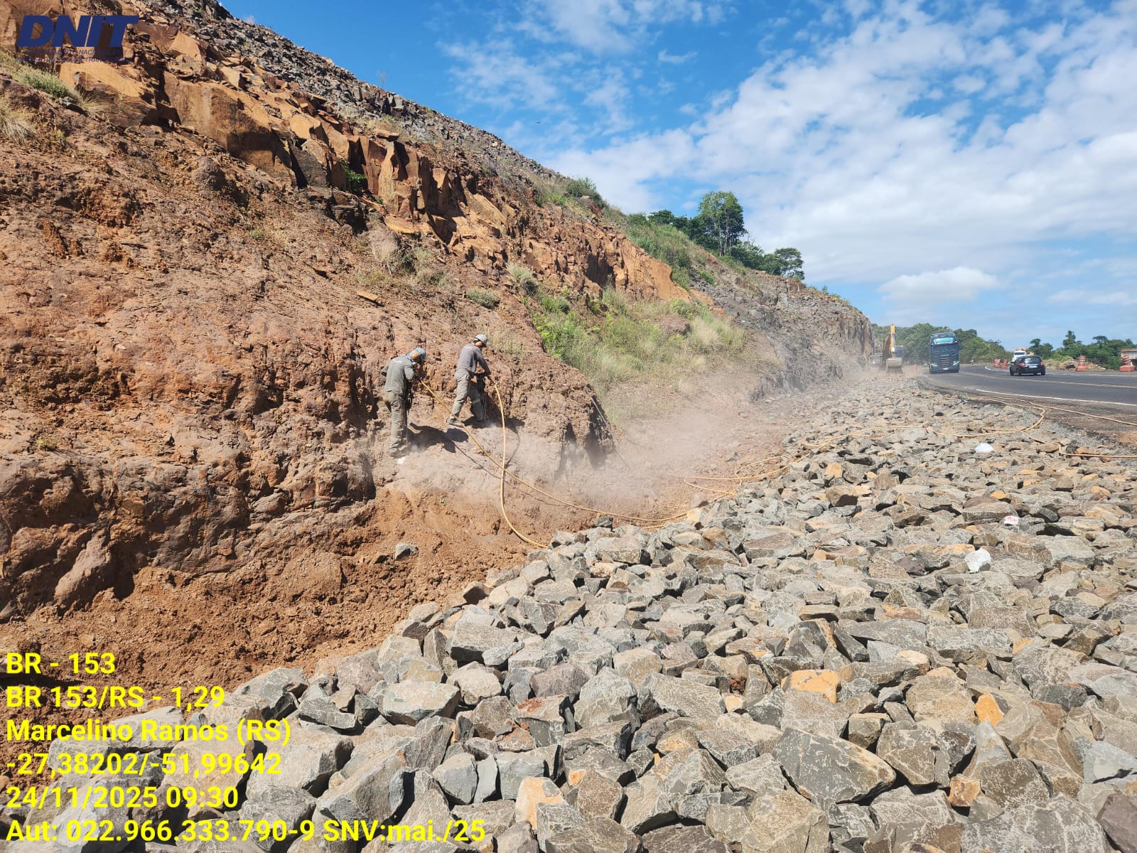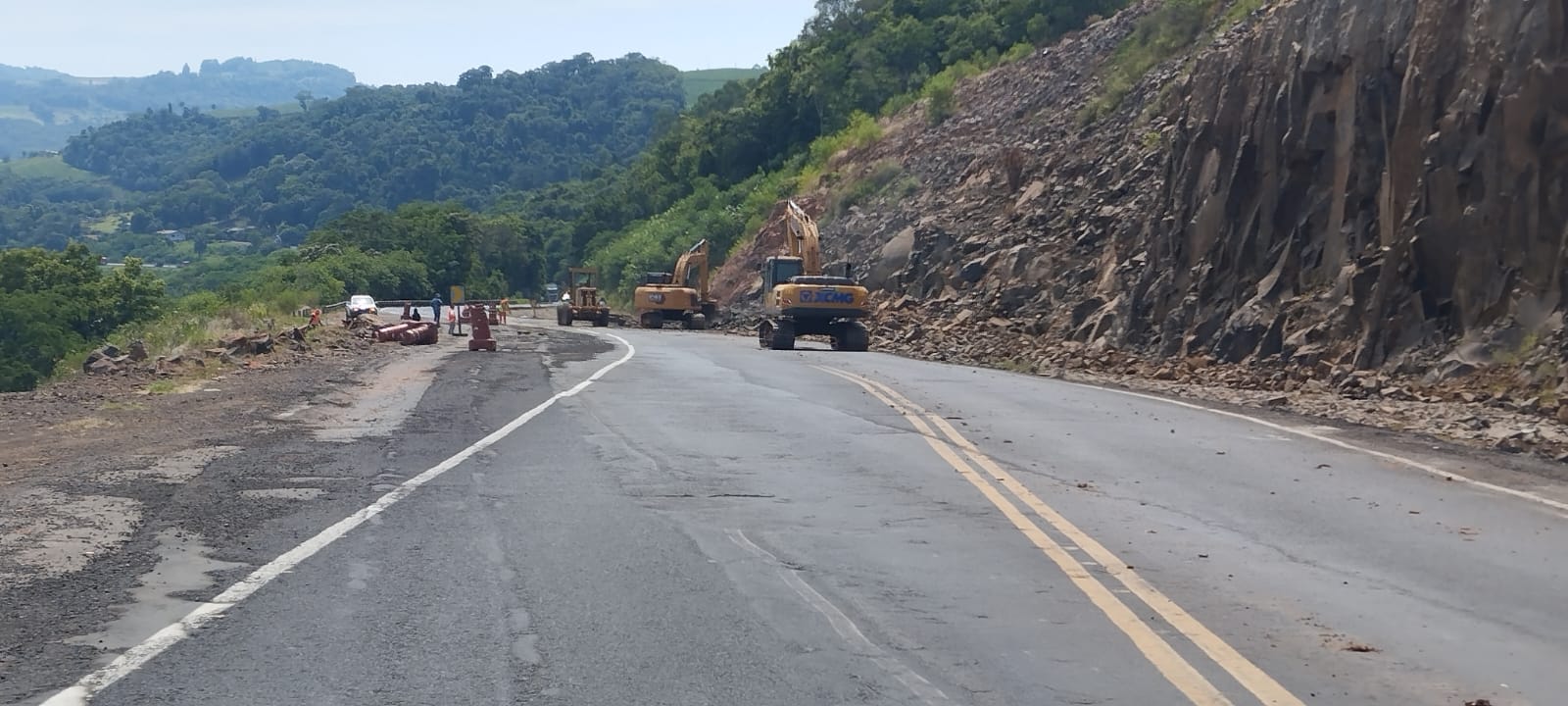 A interdição, válida para ambos os sentidos, ocorre em razão da execução de obras de estabilização do segmento da rodovia administrada pelo Departamento Nacional de Infraestrutura de Transportes (DNIT), incluindo desmontes de rocha com uso de explosivos.