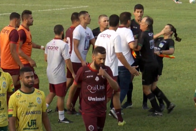 O Rafael Soriano, do Desportiva, tentou agredir a auxiliar Marcielly em uma partida valida pelas Quartas de Final do #Capixabão2022.