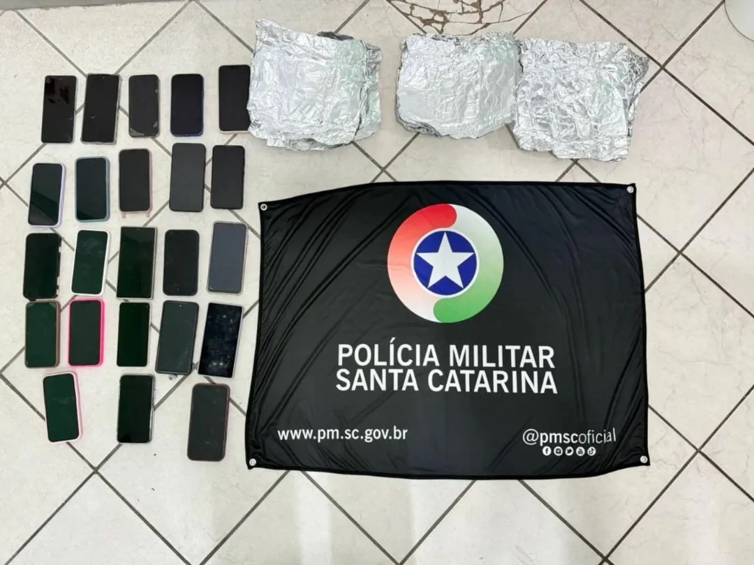 Logo à frente, o veículo foi abordado e o crime descoberto. Conforme a PM, 23 aparelhos de telefone celular foram encontrados enrolados em um papel alumínio, para dificultar o rastreamento.