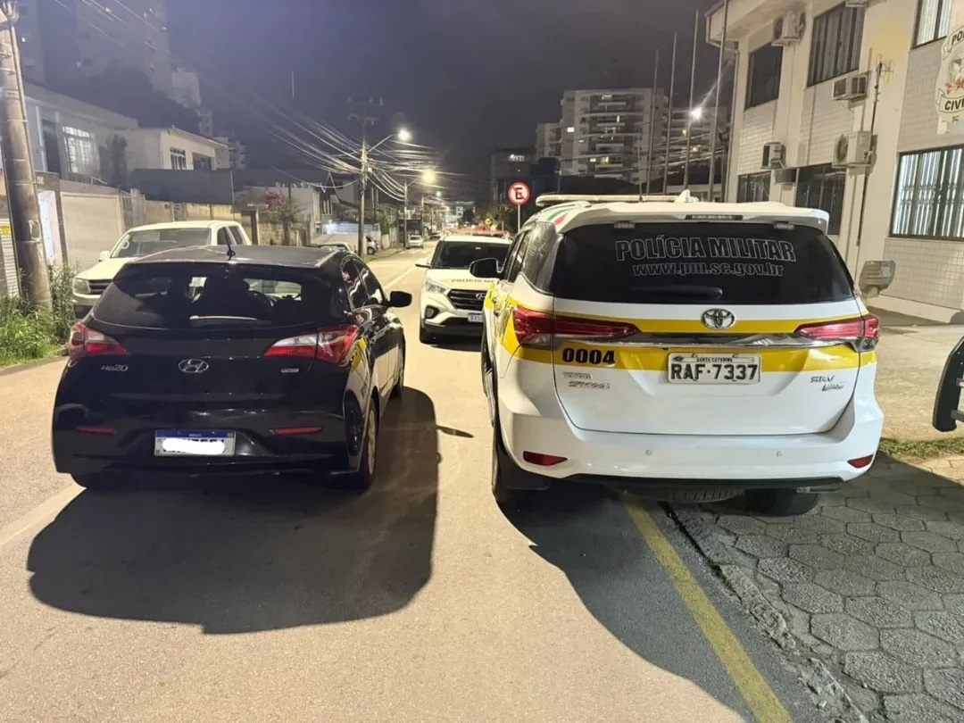 Uma guarnição da Polícia Militar seguia para a SC-281, em São José, por volta das 21h30, quando avistou o condutor de um Hyundai HB20 manuseando o celular enquanto dirigia, na marginal da BR-101.