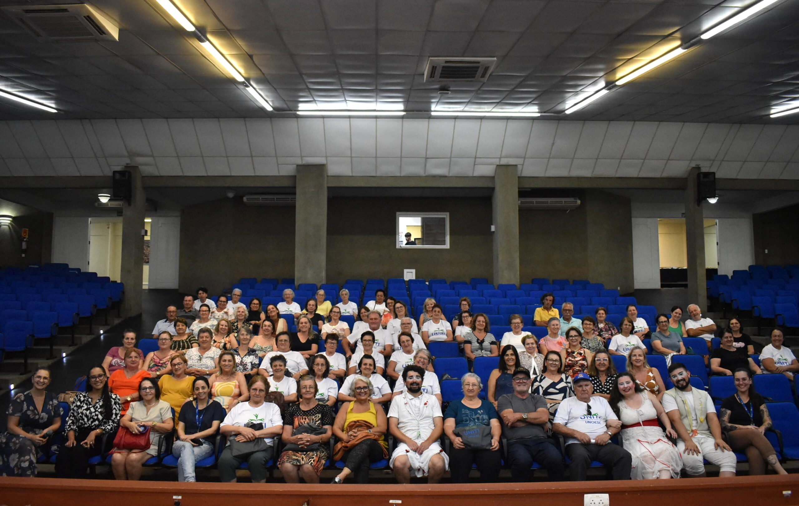 Na quarta-feira (13), a Universidade da Terceira Idade (Uniti), da Unoesc Joaçaba, iniciou suas atividades de 2024. Cerca de 80 alunos foram recepcionados no Auditório Afonso Dresch. A programação contou com uma fala de boas-vindas do pró-reitor de Pesquisa, Pós-graduação, Extensão e Inovação da Unoesc, professor Kurt Schneider, apresentação do Grupo Teatral Reminiscências, palestra com a psicóloga Yanne Nascimento, com o tema “Envelhecer com propósito: explorando possibilidades e construindo um projeto de vida significativo na terceira idade” e ainda um momento de descontração animado pelo músico Kléberson Bonamigo.