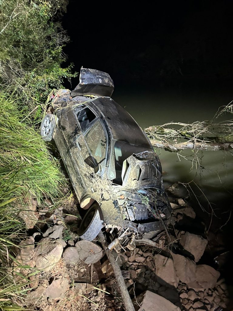 Um veículo saiu da pista e caiu em uma ribanceira, gerando o deslocamento das equipes de emergência para o local do acidente.