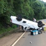 Ouro – Um veículo capotou na tarde deste domingo (30) na SC-150 em Ouro. O acidente, segundo informações, ocorreu por volta das 17h na saída para Lacerdópolis, nas proximidades da lanchonete Tio Patinhas. Conforme as informações, o veículo envolvido foi uma GM/Montana que estaria fazendo o sentido Centro.