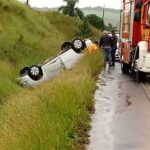 Corpo de Bombeiros de Capinzal foi acionado e constatou que os três ocupantes já estavam fora do veículo. A suspeita é que a Spin tenha aquaplanado. A Polícia Militar prestou auxílio à ocorrência registrada por volta das 15h.