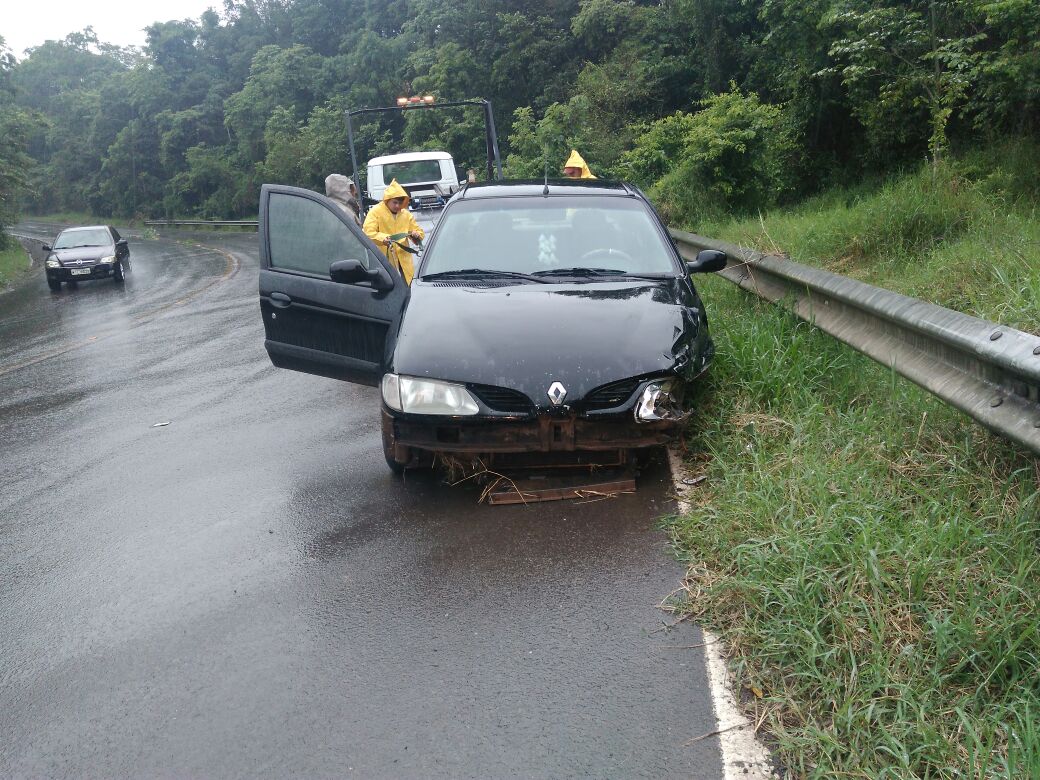 O carro atingiu o guard-rail do outro lado da pista. O condutor, que era o único ocupante do veículo não se feriu. Chovia no momento do acidente. O carro foi removido pelo guincho e a PM auxiliou na orientação do trânsito. Não houve necessidade da presença da Polícia Militar Rodoviária.