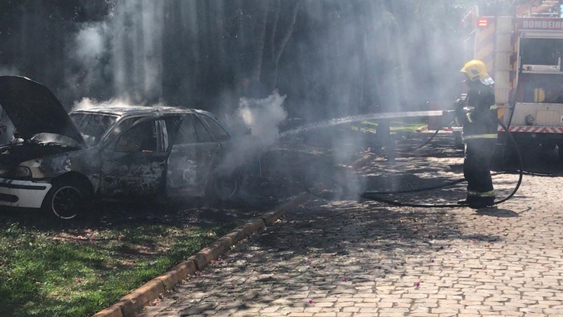 Veículo é destruído por incêndio possivelmente criminoso no centro de Capinzal
