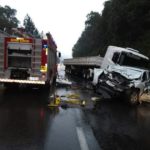 General Carneiro – A manhã chuvosa desta quinta-feira (18) resultou em um acidente na BR-153, no KM 360, entre União da Vitória e General Carneiro, no Sul do Paraná. O acidente ocorreu por volta das 10h30 e envolveu uma carreta e uma caminhonete da Polícia Civil do estado do Rio Grande do Sul.