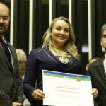 Brasília – A vice-governadora Daniela Reineht foi homenageada, nesta segunda-feira (09) em Brasília, no Congresso Nacional, com a Medalha Patriótica – Sociedade Civil 2019. A honraria, que também foi entregue ao Ministro Sérgio Moro e a outras autoridades, é concedida em reconhecimento à atuação em prol da democracia e no combate à corrupção.