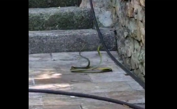 Lacerdópolis – Um vídeo que circula pelas redes sociais mostra uma cena diferente no pequeno município de Lacerdópolis. O vídeo feito por um morador, segundo informações, nesta semana na gruta, mostra a ‘dança da cobras’, ritual de acasalamento dos répteis. Nas imagens, duas cobras de coloração verde, de considerável comprimento, contornam-se mutuamente na escadaria do local. O autor do vídeo também narra a cena presenciada e não esconde a surpresa diante do fato, conforme ele, visto pela primeira vez. Conforme as informações, os animais não foram perturbados e, posteriormente, retornaram para a região de mata. Assista: